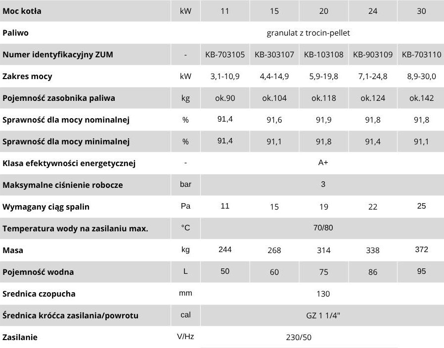 Sprawność cieplna urządzenia wynosi ok 92,9 %, co oznacza niskie zużycie pelletu i realne oszczędności na ogrzewaniu. Kocioł posiada klasę energetyczną A+, spełnia wymagania normy 5 klasy PN-EN 303-5:2012 oraz unijnej dyrektywy EcoDesign, dzięki czemu kwalifikuje się do programów dofinansowań, takich jak Czyste Powietrze.